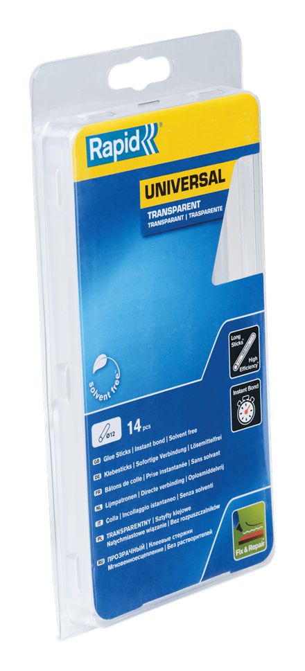 Thanks to the high resin content, these 12 mm transparent universal adhesive sticks provide superior bonding quality. Ideal for a wide range of applications where transparent adhesive is suitable. The package contains 14 short adhesive sticks, perfectly suited for repair, floral arrangements, and maintenance tasks.