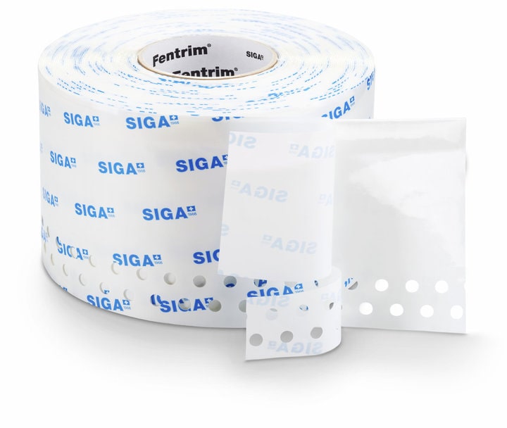 SIGA Fentrim® 20 is a high-performance airtight tape with a perforated plaster zone, designed for indoor use. Fentrim® 20 features a pre-folded 15mm and durable adhesive tape that can be plastered and is ideally suited for sealing connections of indoor structures around door and window frames in conjunction with stone, metal, or other solid surfaces. It offers very high adhesion strength on all types of surfaces and is easy to install. The SIGA tape is made from a special fleece that can be plastered over.