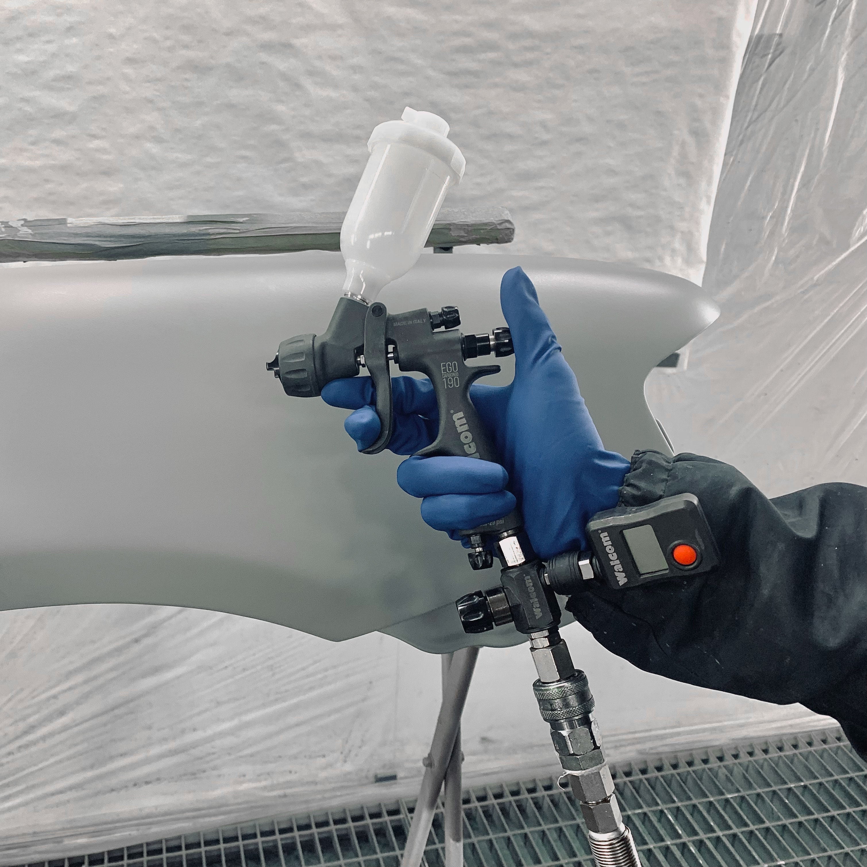 • durability achieved through a combination of materials such as stainless steel, aluminum, brass, and carbon fiber, treated with nanotechnology processes for easier cleaning and reliable resistance to chemical aggression. The EGO CARBONIO is the most advanced from a design and manufacturing perspective, while also being easier and more practical for the painter to use. A unique spray gun capable of handling a wide range of applications according to the Walcom® philosophy, which is based on innovation and technology.