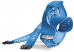 The tape dispenser with a non-tearing strap and integrated stainless steel blade is designed for time-saving efficiency and is suitable for tapes up to 60 mm in width.