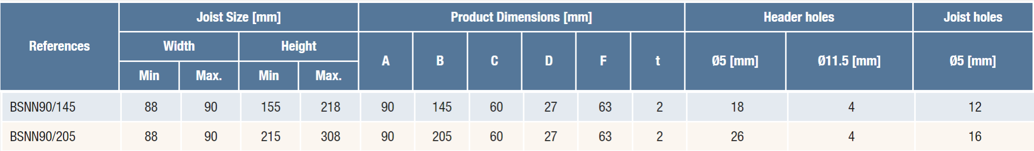 Product description and full specifications on the manufacturer's website: Face Fix Hangers - BSNN | Simpson Strong-Tie (strongtie.lv)