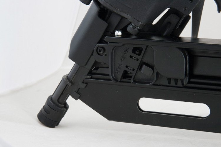 The specially designed nose tip reduces wear and prevents movement across the work surface even when nails are driven at an angle. The nailer also has the capability to set air exhaust at any angle (360° rotation).