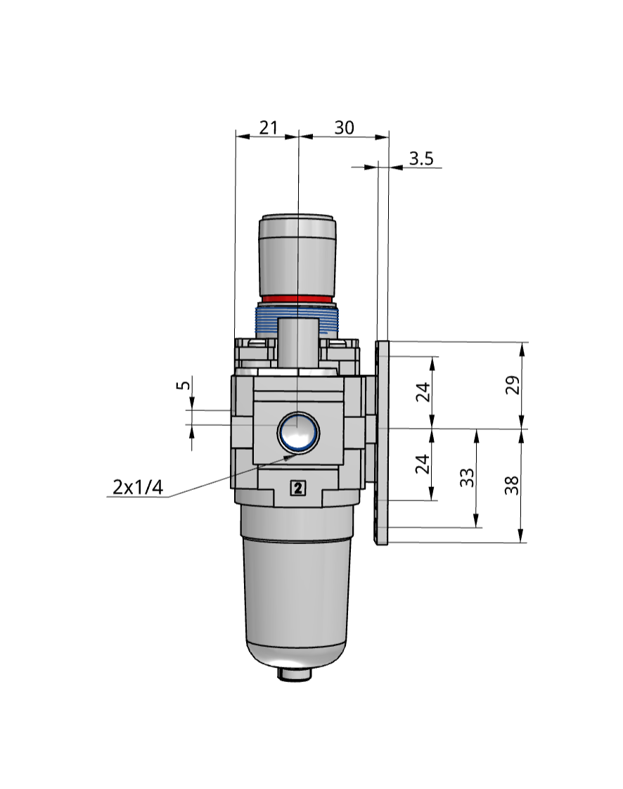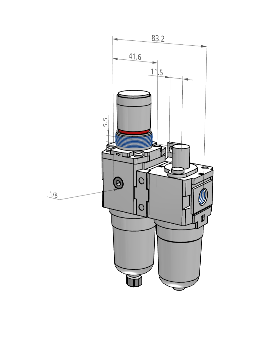 FRL combined units AC-D. Consistent air treatment. Complies with air quality standards — certified air purity class according to ISO8573-1:2010. Prevents dust and foreign matter accumulation - Clean design with a uniform appearance. Guaranteed durability and easy maintenance - Dual-layer, transparent polycarbonate bowl. Convenient pressure adjustment - Ergonomic handle and transparent opening/closing window for the built-in square pressure gauge.