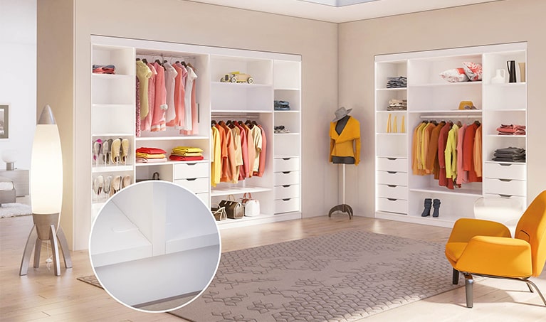 Cabineo is a single-piece connector that does not require edge drilling - the connection occurs only on the surface. As a result, Cabineo can be used with all CNC equipment. Compared to traditional fasteners, Cabineo offers more efficient production, faster installation, and greater clamping force. This installation concept is designed to utilize minimal resources while achieving maximum functionality.