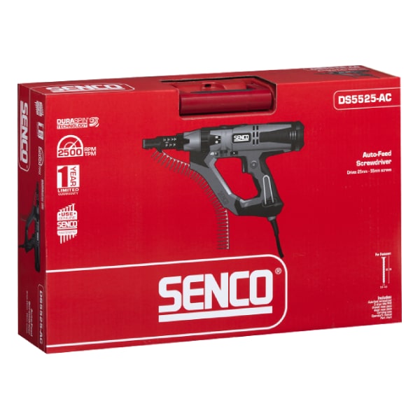The rapid speed, well-balanced performance ensures unparalleled efficiency and practicality even for the most demanding industry experts and professionals. Equipped with Senco's patented automatic screw feeding system combined with a nosepiece that does not obstruct the view of the contact point between the screw and the surface, allowing screws to be driven into tight spaces that cannot be accessed by other automatic feed screwdrivers available on the market. Reduced trigger resistance allows for all-day driving with less resistance and load on the screwdriver's motor. (A special bit is required for screws of 13 - 25 mm.)