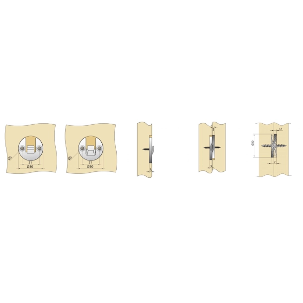 Its shallow installation depth requirement – only 3 mm – makes the DUO 30 ideally suited for use in thin materials without compromising the safety of the fastening. The plates can be easily and quickly secured with standard countersunk screws, providing convenient and rapid assembly without specialized tools.
