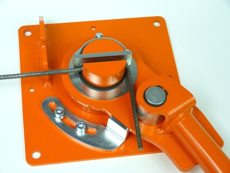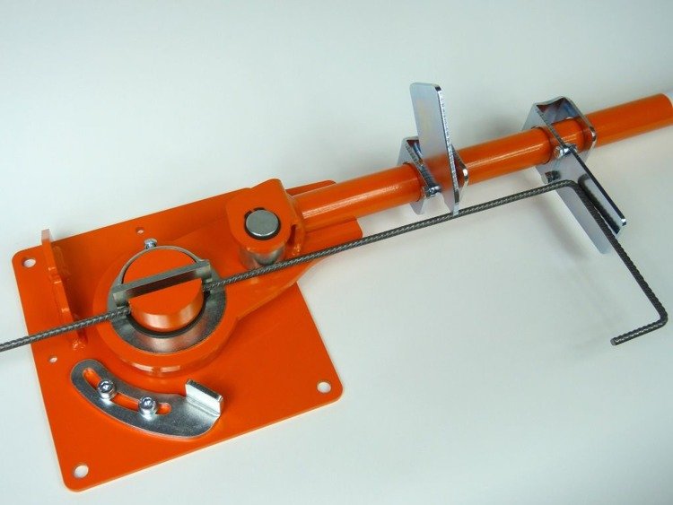Handheld rebar bending tool. This is an indispensable tool for bending rebar both on the construction site and in the manufacturing company.
