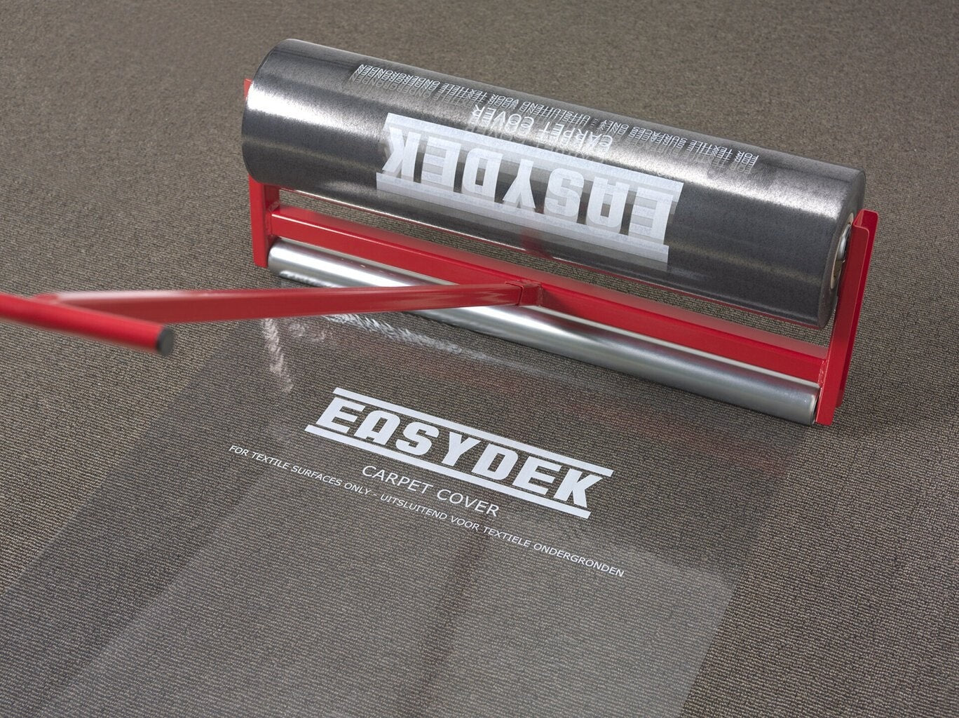 The "Easydek Applicator" is a device specifically designed for the quick and easy laying of carpet and other floor covering protective films over large areas.