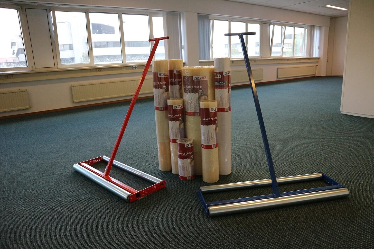 The applicator is designed for mounting protective films for Carpet and Floor Cover. Use the Easydek Carpet Cover and Easydek Floor Cover applicator for roll mounting. These rolls are 500 meters long and are perfect for protecting large floor surfaces during construction, renovation or maintenance work. With this applicator, laying 1000 m2 per hour is no problem.