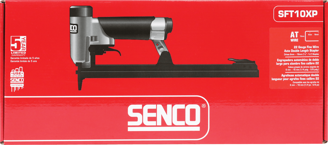 This durable Xtreme lightweight wire staple SENCO pneumatic tool is designed for professional work. Various SFT10XP models use staples from 5 to 16 mm in length and feature excellent user-friendly features, while the double-length magazine reduces downtime and increases productivity.