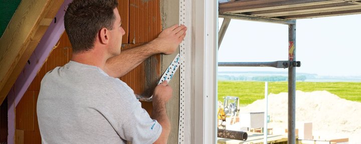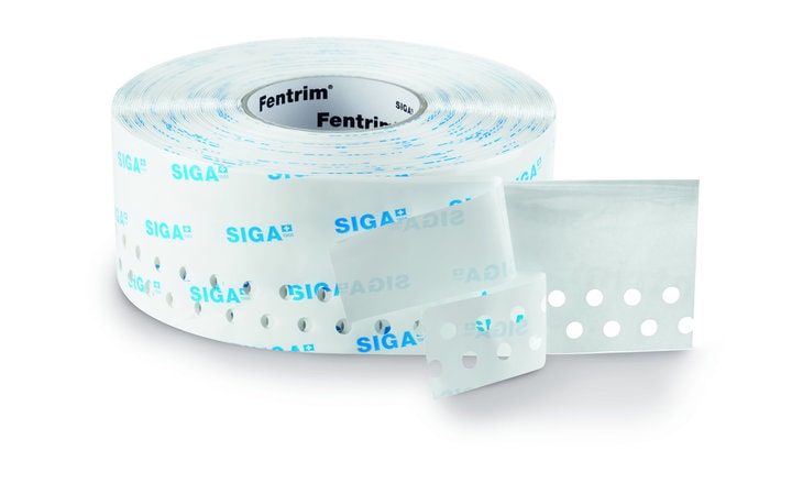 Pre-folded, single-sided high-quality adhesive tape for sealing window and door frames from the inside.