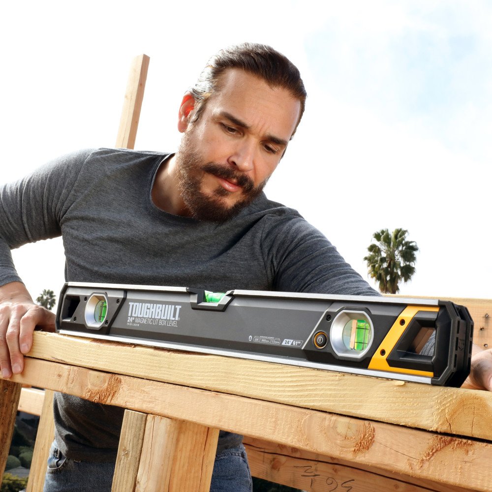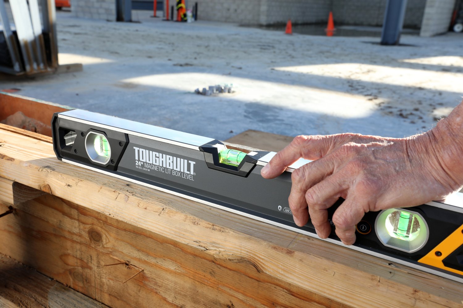 The ToughBuilt 60 centimeter illuminated magnetic level uses LED illuminated vials to make it easier to see the readings.