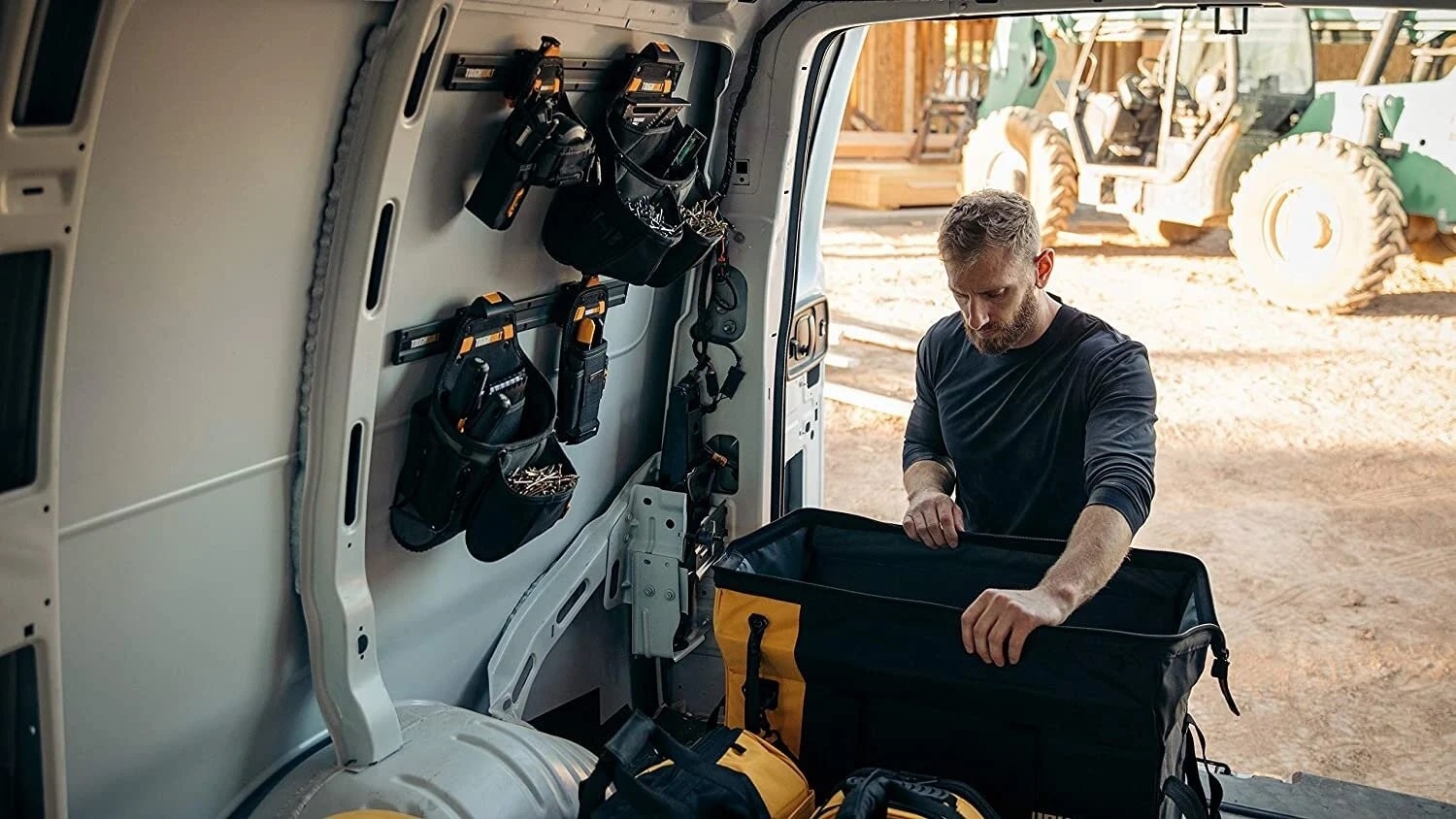 The "ToughBuilt Wall Organizer" revolutionizes the management of professional tools and accessories. It is securely mounted on the wall or at the back of a van using the screws and wall anchors included in the set.