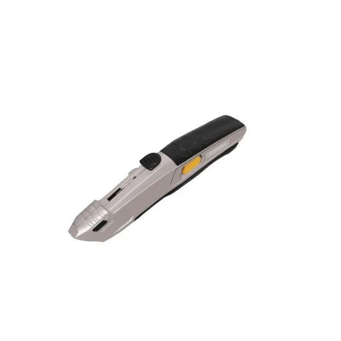 The blades are replaced by pressing the release button and pulling the blade out of the tool. Then you just need to unlock and a new blade will be pushed out (if it is in the holder). This solution will effectively speed up the work process and contribute to better work organization. Automatic blade changing also saves time as there is no need to look for additional blades hidden in tool bags. The metal body is easy to open. Simply push the yellow integrated slider located in the center.
