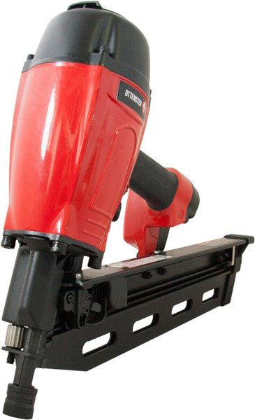 The 4PRO FN2190 pneumatic nail gun is designed for 50-90mm nails in 21° plastic collated strips. It is ideally suited for timber frame construction, roofing board installation, and the manufacturing of wooden boxes and packaging. The gun is lightweight, well-balanced (only 3.88kg), and equipped with convenient features such as 360° adjustable exhaust, adjustable nail depth settings, and dry fire protection. A specially designed positioning tip allows for operation on wet surfaces, preventing the tool from slipping during use.
