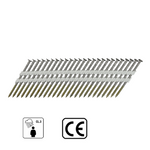 High-quality stainless steel (INOX A4) full head nails with a grooved surface, providing enhanced grip and strong fixation. The nails are connected by a plastic strip at a 34-degree angle and are designed for use in pneumatic nailers. Ideal for applications in areas with high humidity or corrosion risk, such as facades, wooden structures, and outdoor work.
