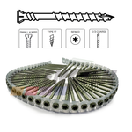SENCO screw strip with dimensions 4.2 x 40-75 mm is ideally suited for the installation of facades, flooring, and other wooden structures, providing excellent corrosion protection with a Ruspert II coating in green color. RUSPERT® is a high-quality metal surface treatment technology consisting of three layers: 1) a metallic zinc layer, 2) a high-grade anti-corrosion chemical conversion film, and 3) an outer layer utilizing heat treatment technology. This unique combination ensures exceptional durability and protection against various weather conditions, making the screws suitable for both indoor and outdoor applications. The green coating provides an aesthetic appearance.