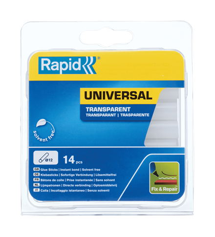Thanks to the high resin content, these 12 mm clear universal glue sticks provide a strong bond. Ideal for a wide range of applications where clear adhesive is suitable. The package contains 14 short glue sticks, perfect for repairs, floral arrangements, and maintenance tasks.