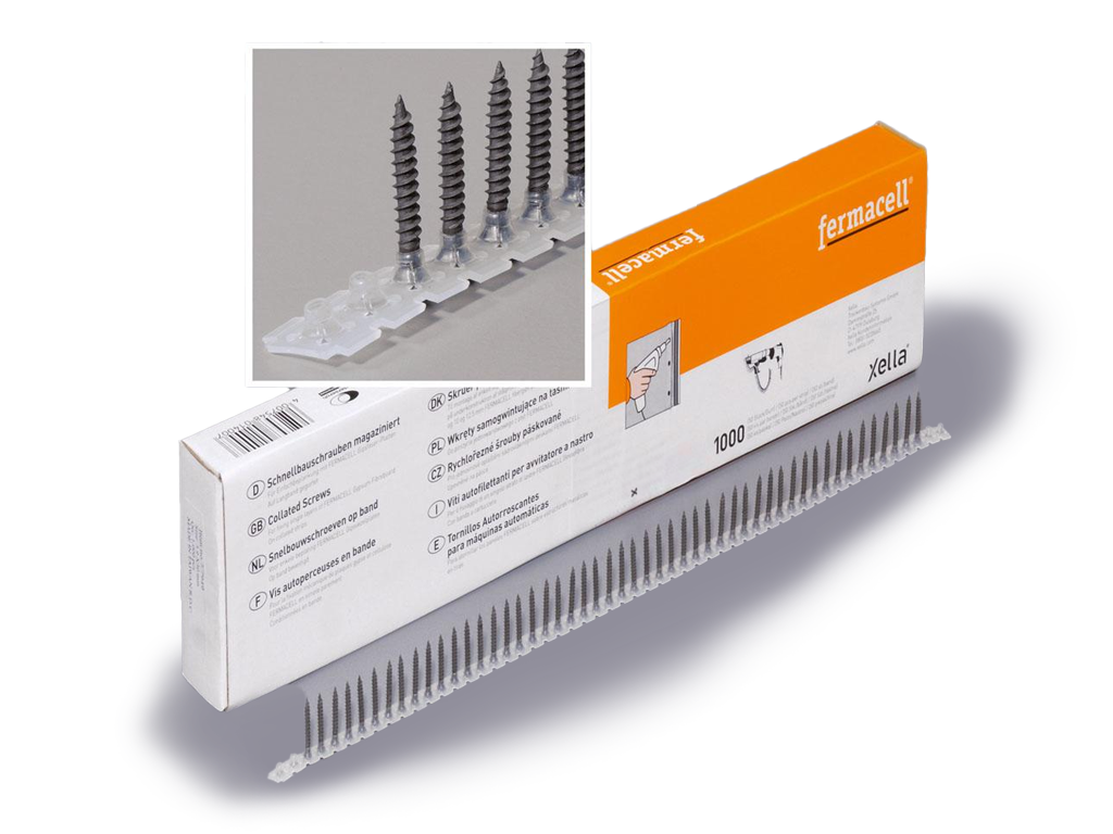 Fermacell / reģipša skrūves lentā ar izmēru 3,9 x 45 mm ir lieliska izvēle visdažādākajām ģipškartona konstrukcijām. Fischer ģipškartona skrūvju sortiments piedāvā uzticamu risinājumu ar HiLo vītni, kas nodrošina stabilu paneļa fiksāciju un galviņas virsmas līdzenumu. Pateicoties spicajam galam, skrūves ātri un precīzi ieurbjas metāla vītnē, nebojājot materiālu. Īpaši dziļā uzgaļa ligzda nodrošina drošu skrūvēšanu, kas garantē ilgāku uzgaļa kalpošanas laiku. Lentes sistēma ir piemērota Senco Duraspin, Makita vai kāda cita ražotāja skrūvmašīnām ar automātisko skrūvju padevi, nodrošinot ātru, uzticamu un izdevīgu risinājumu.