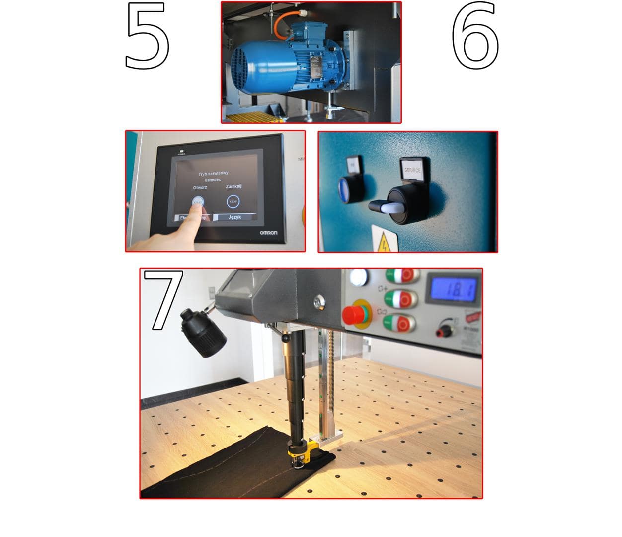 Multiple safety interlocks prevent operation if the dust container is open or blade tension is insufficient, and a dedicated microswitch stops the machine instantly upon blade breakage. A mechanical blade catcher locks a broken blade to prevent uncontrolled drop, and an airbag assists with moving large workpieces on the table. Optional dust extraction keeps the work area clean, and an accessory gauge provides accurate depth‑of‑cut measurements.