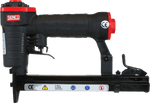 The SFW05 lightweight pneumatic stapler has several options for fastening staples ranging from 3 to 16 mm in length. This stapler is designed for light, semi-professional, and household tasks. This tool is part of the SemiPro series and features a restrictive trigger function for maximum safety. The SFW05 is easily recognizable due to its red nose and unique black housing. It is a compact tool for use with AT staples.