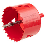 - Hole saw made of bi-metal for use in wood, metal, plastic, drywall materials, and insulation boards (e.g., drywall boards and OSB)